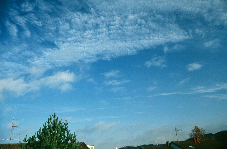 | Cirrocumulus stratiformis perlucidus lacunosus, Cumulus fractus (Cc str pe la, Cu fra) | ||||
